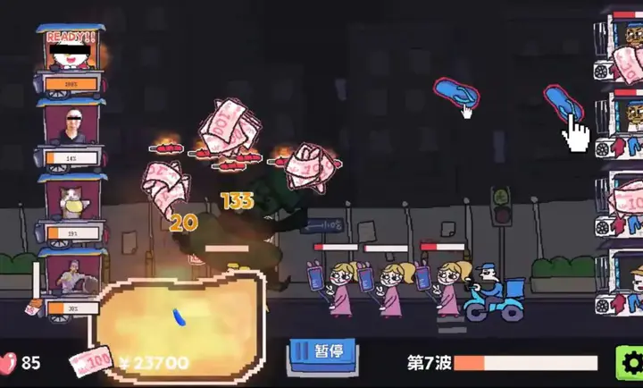 1、将市井生活与塔防玩法巧妙融合,题材新颖,充满当代网络文化的戏谑智慧。