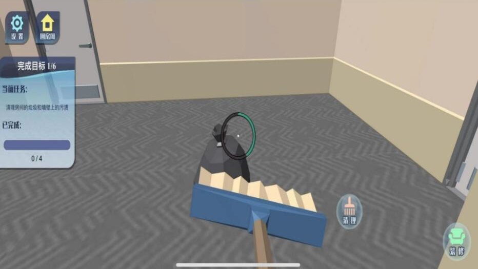 3、房间里面还有一些没有出来掉的杂物,走到面前以后,点击清理。