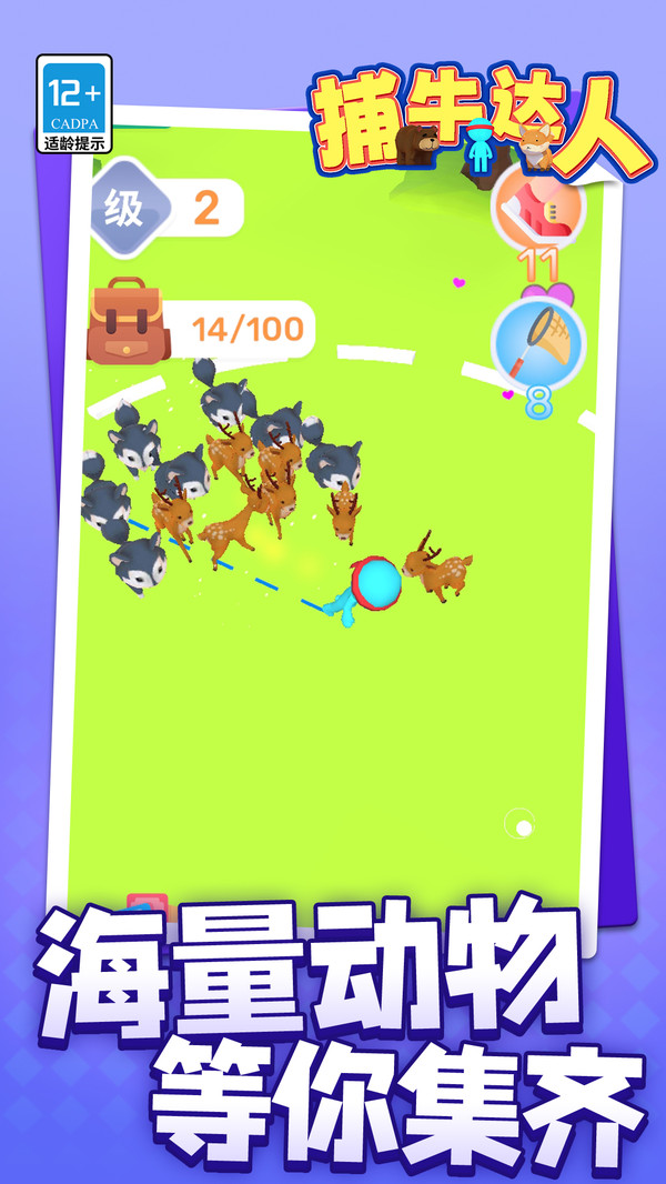 1、点击屏幕可以移动角色,捕获动物到你的店铺中。