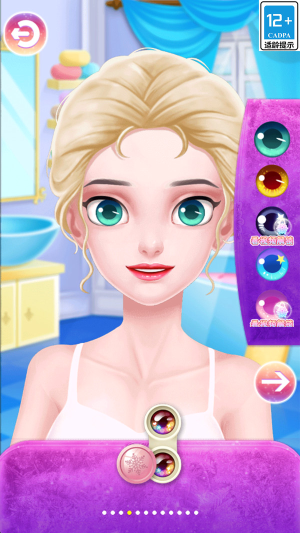 3、还需要给公主进行装扮,点击箭头开始调整;