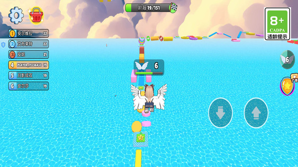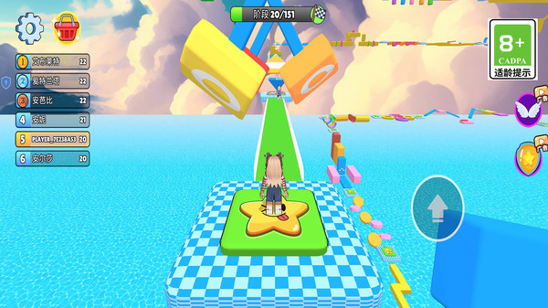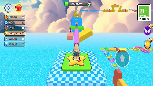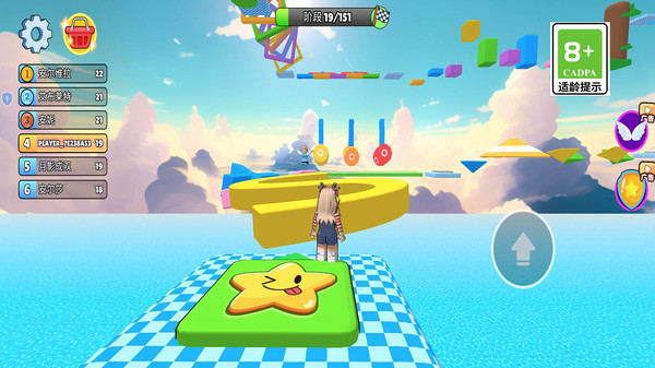 2、在世界中跑酷冒险,每一个星星处都会自动存档,摔落会从上一个存档处复活。