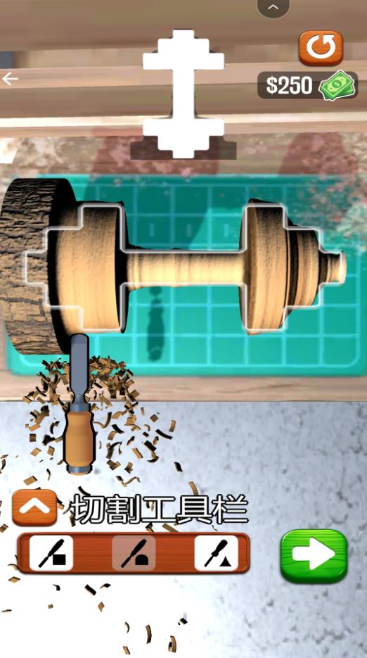 旋转削木头是一款玩起来十分有趣的模拟游戏,化身为一名木工,有着自己的工作室,每一天都会有顾客前来,他们的需求是不一样的,你要根据他们的要求,制作出符合预期的木制品,不管是形状,大小,或者是颜色,都需要一样才行,这样才能获取到相应的奖励,充分运用好各种各样的切割工具,每一个细节都要捕捉到,按照要求进行切割就好,快来尝试,打造出最为优秀的作品吧!