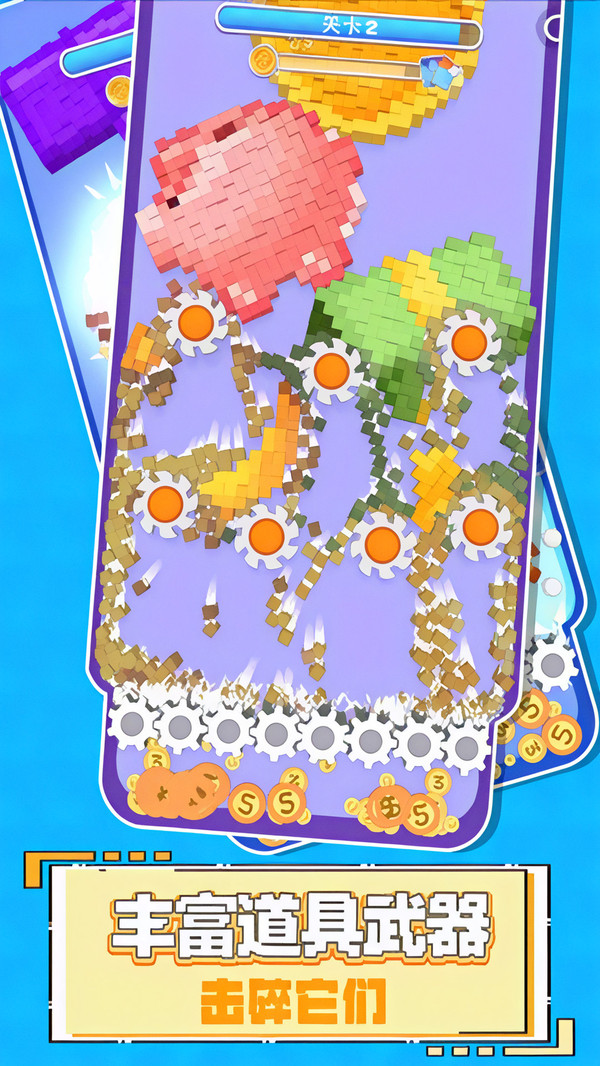 4、海量的关卡挑战赛,不断的挑战新的玩法,直接锯开大量的方块完成任务。
