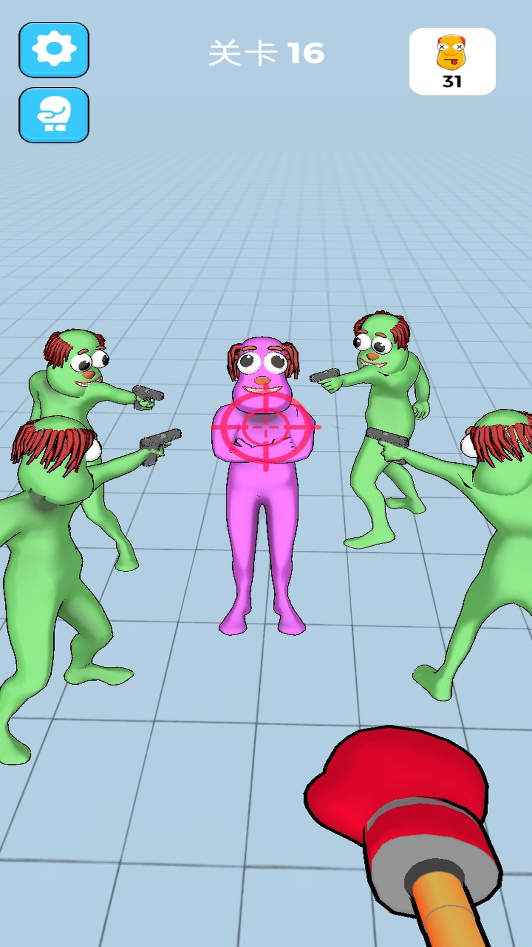 3、魔性十足的游戏玩法,橡皮人的数量逐步的增多,瞄准对手成功的完成任务。