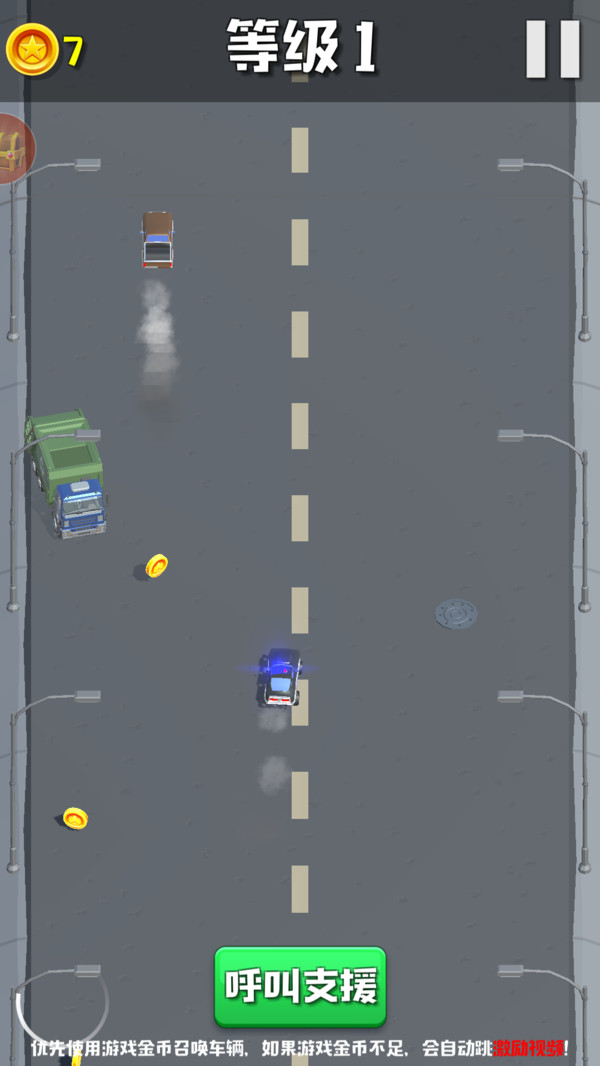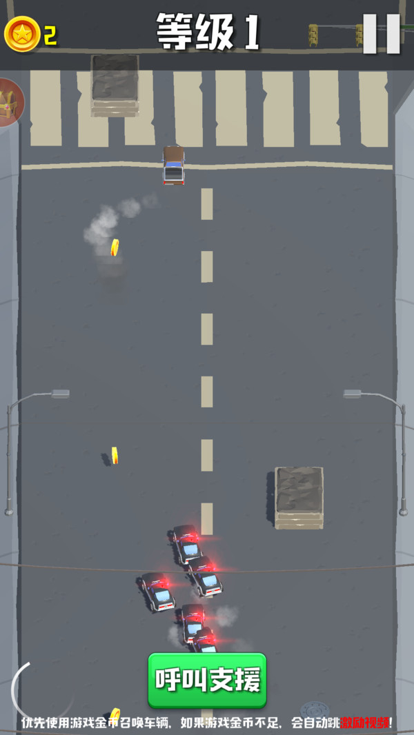 2、关卡开始后,小偷在前方逃命,你需要左右滑动屏幕来移动警车。