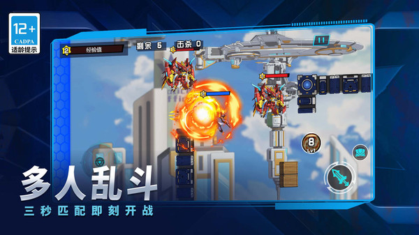 2、每个机甲拥有普通攻击和三个主动技能,通过技能组合可打出高伤连招,合理分配能量值是取胜关键。