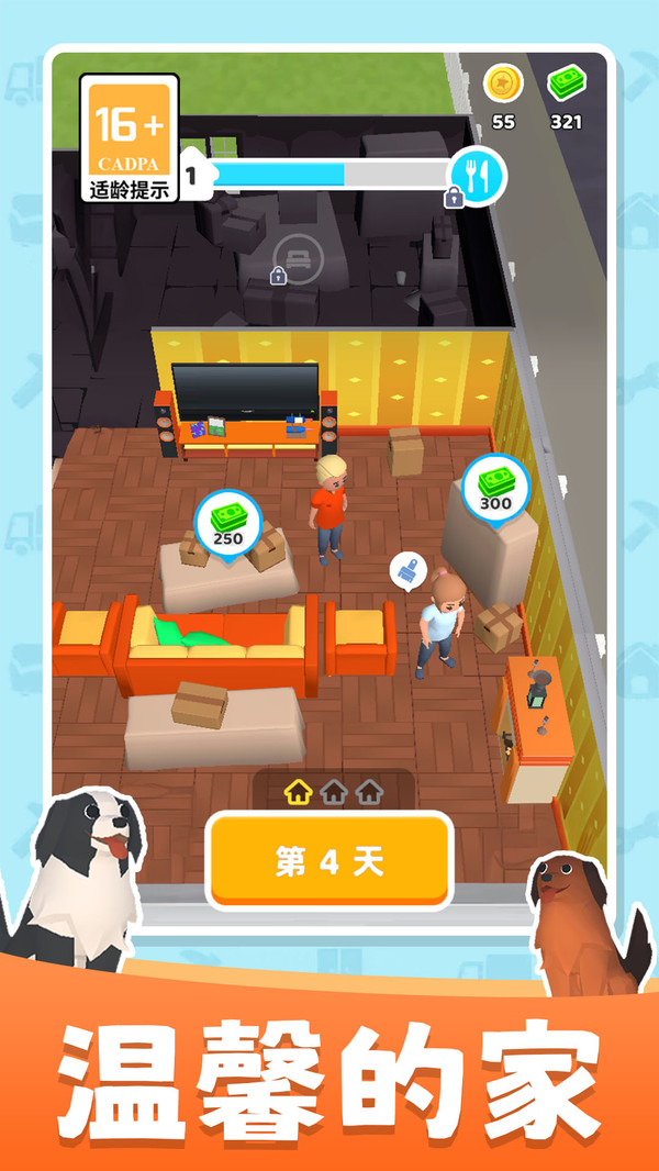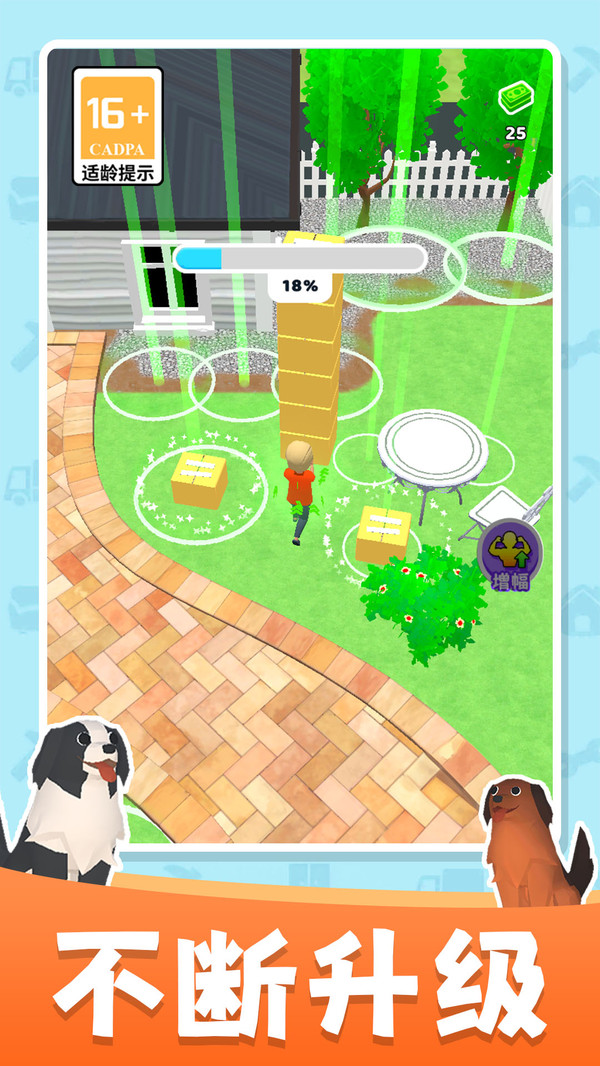 1、点击屏幕滑动,控制角色移动,在场景中完成一系列的整理任务。