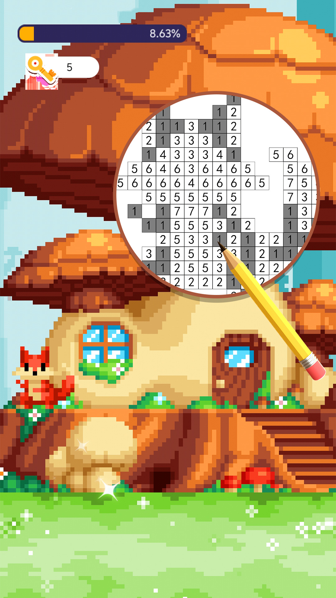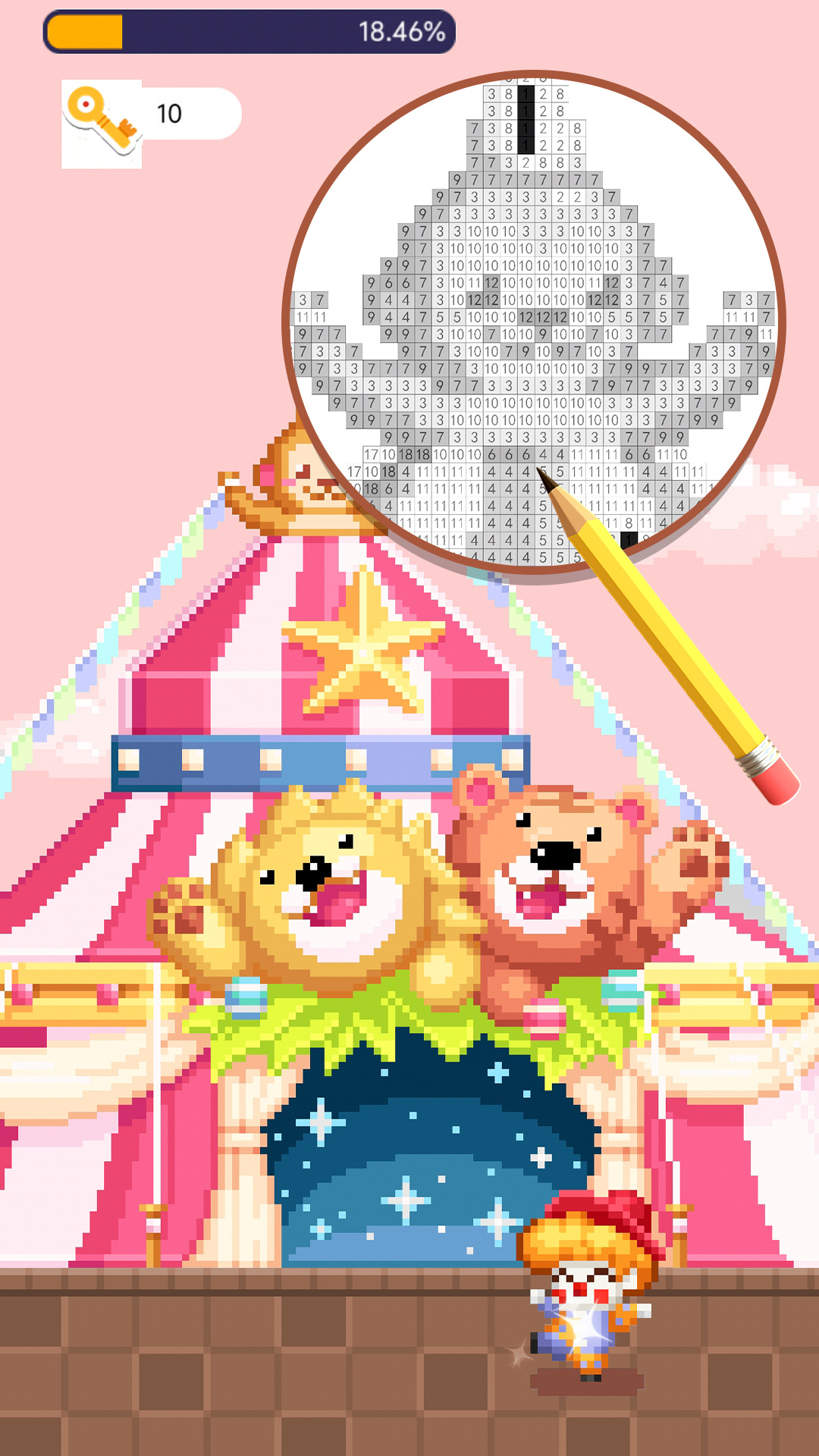 3、点击下方的数字,即可进行涂色;