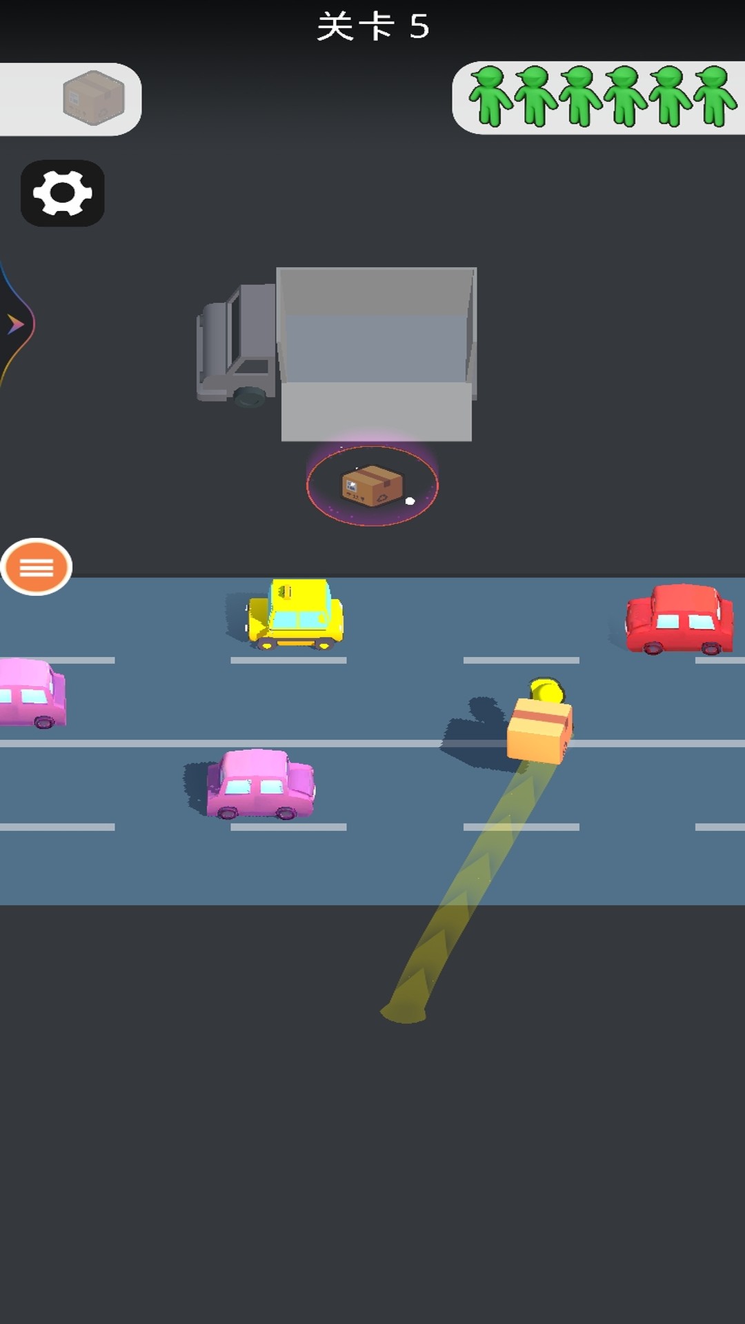 4、任务难度逐步的提升,点击收集马路中的盒子,避开沿路的车辆到达终点。