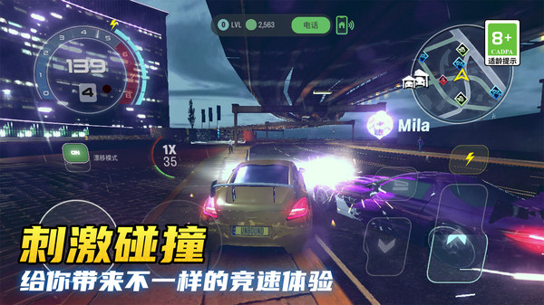 2、通过虚拟方向盘或重力感应控制车辆,掌握漂移、氮气加速、紧急变向等高级驾驶技术。