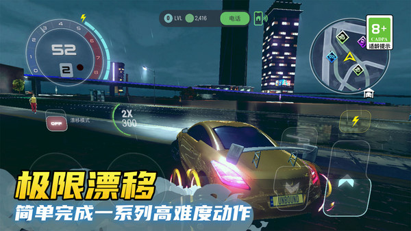 1、在开放世界中驾驶时,接近特定区域会自动触发街头挑战,获胜可获得金币和声望。