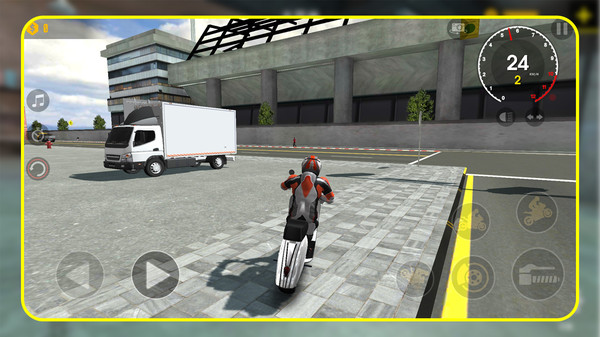 3、在城市中竞速,左侧控制摩托方向,右侧控制油门刹车以及特技动作使用。