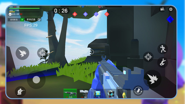 1、采用标准FPS操作模式,左侧移动摇杆控制走位,右侧按键完成瞄准、射击、换弹和投掷物使用。