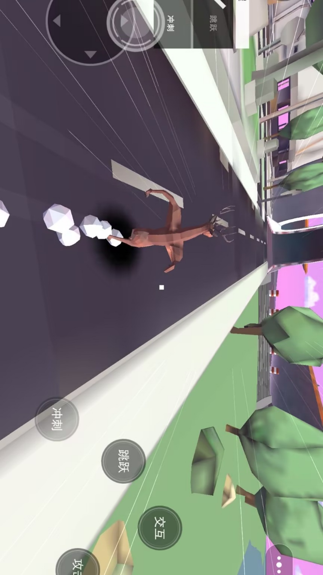 1、使用虚拟按键控制小鹿行走、跳跃,在普通状态下避开行人与障碍,保持低调探索。