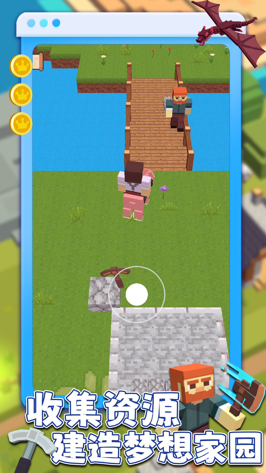 1、进入游戏,控制游戏中的方块人开始移动,执行任务寻找好友斗和恶龙展开对战。