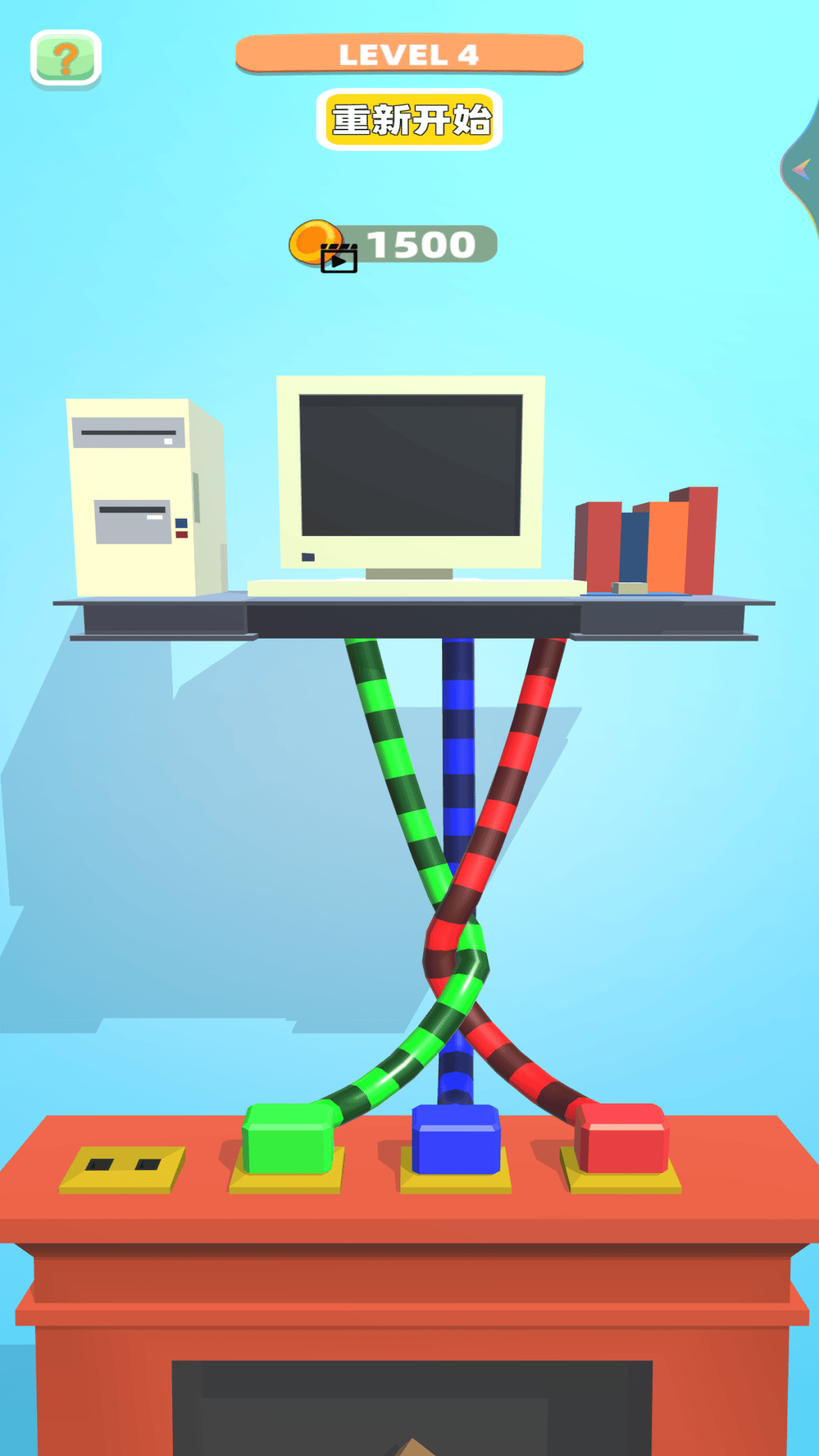 3、需在三维虚拟场景中观察绳子交叉关系,规划最佳路径,消除时伴随清晰特效与音效,带来成就感。