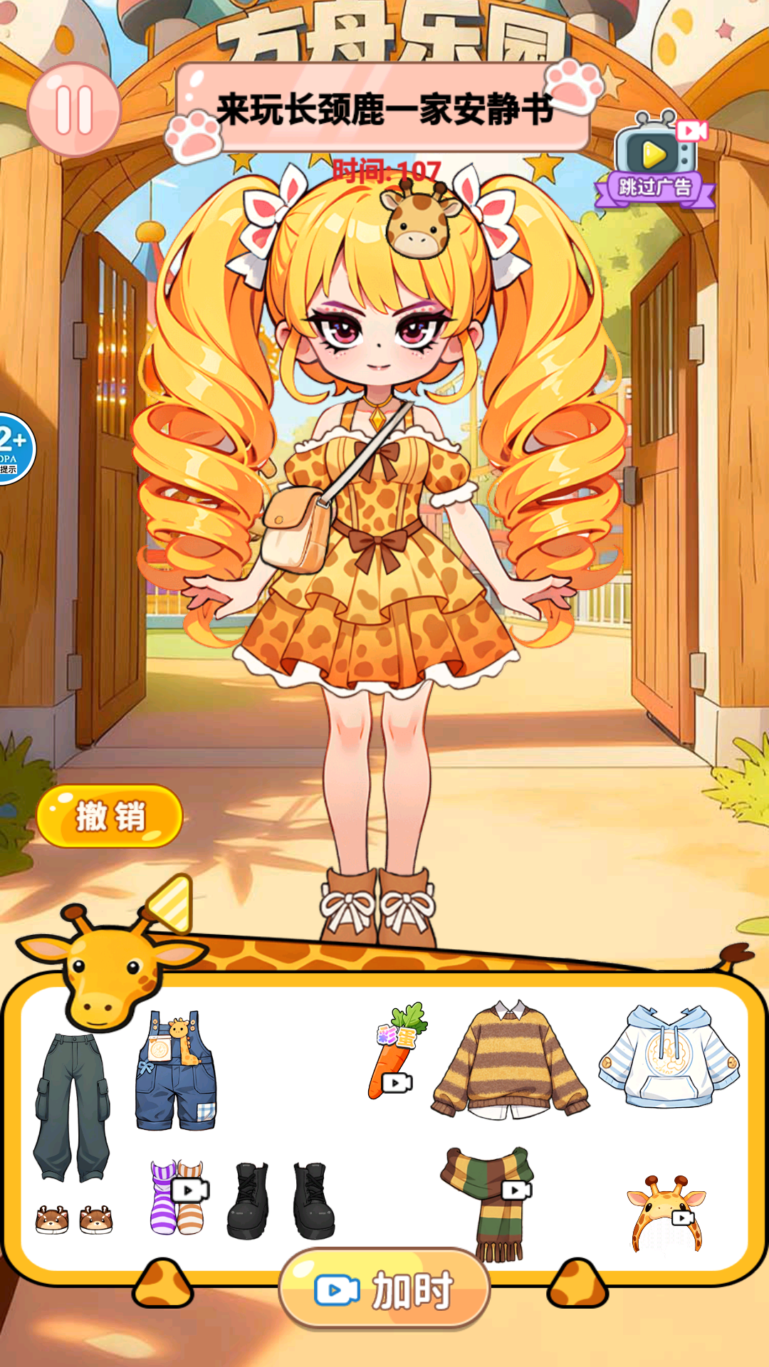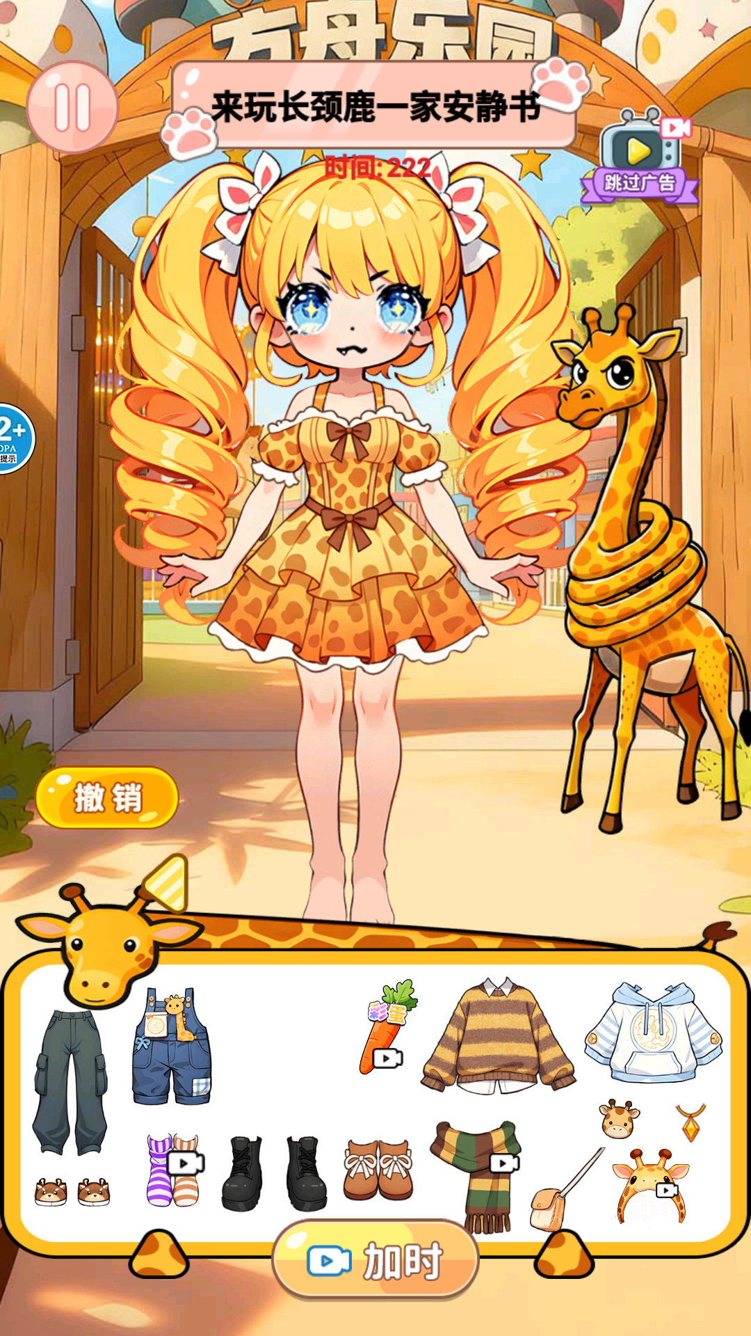 3、所有互动以点击、拖拽为主,柔和的色彩搭配、轻快的背景音乐,配合长颈鹿的萌系动作,营造温馨氛围。