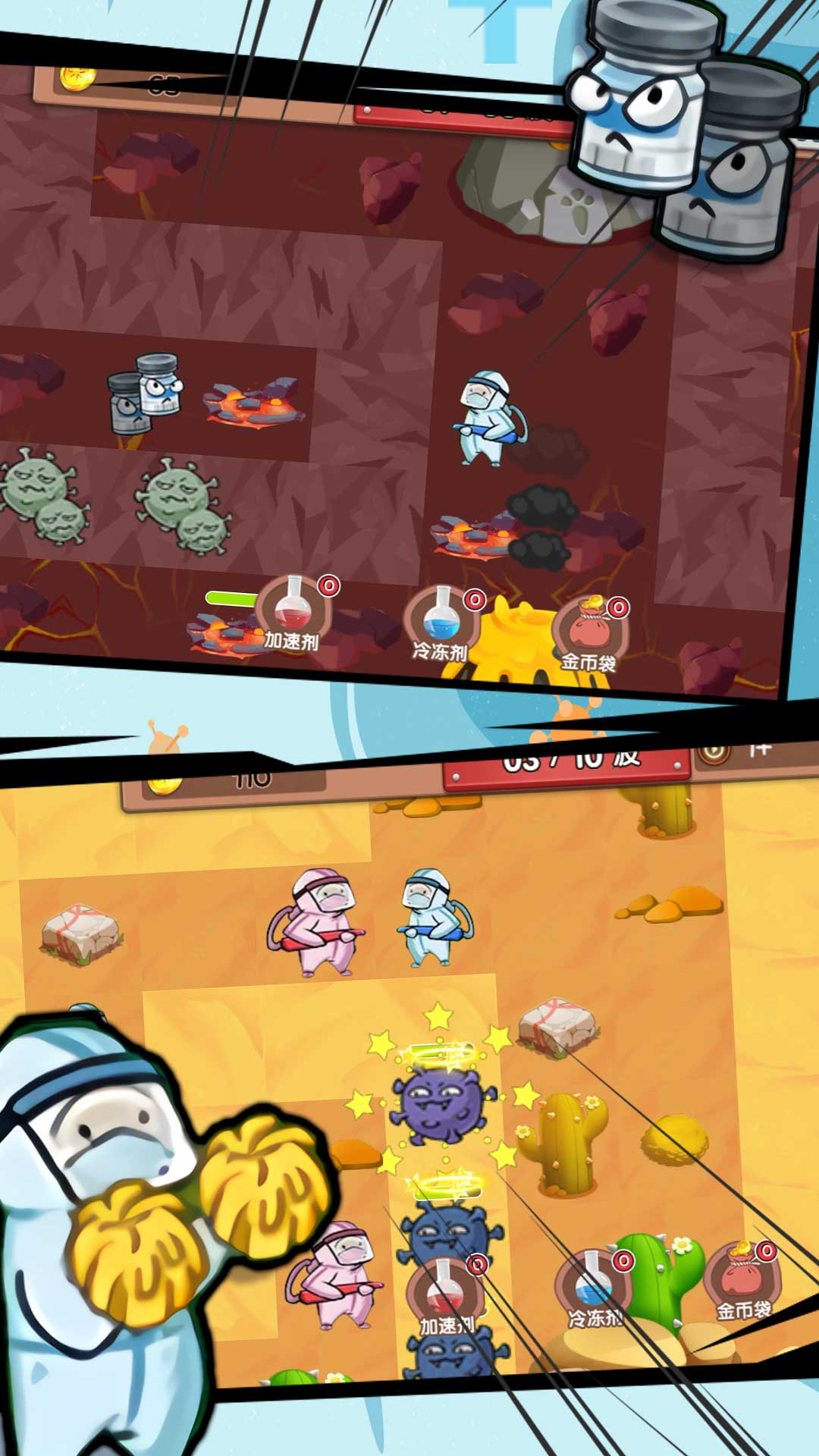 3、看你能在越来越强的敌人潮中坚持多久。在地图冒险模式中,探索被国王力量扭曲的区域,解锁新的防御塔类型。