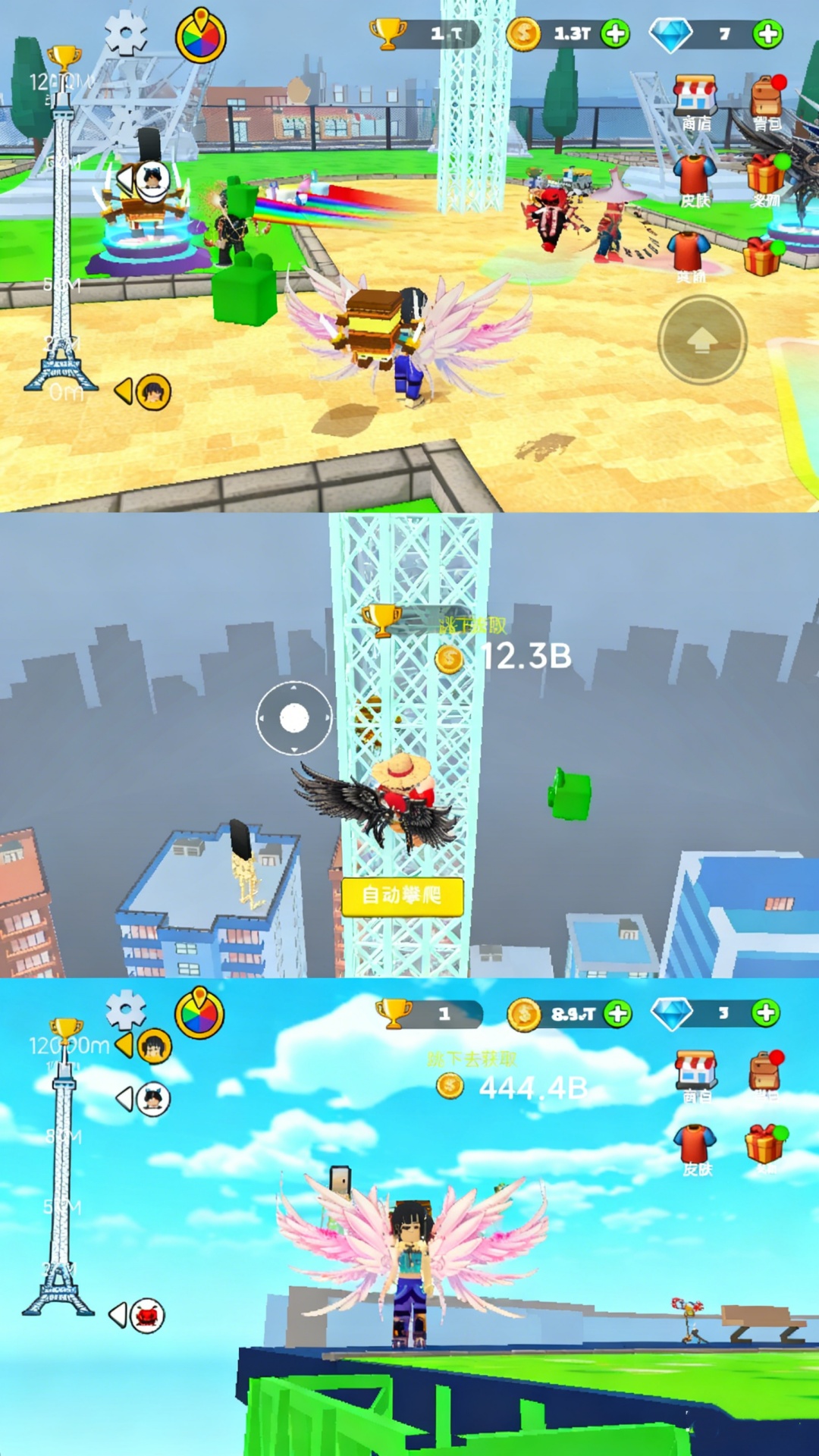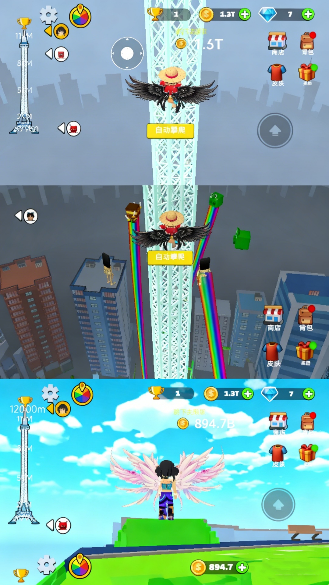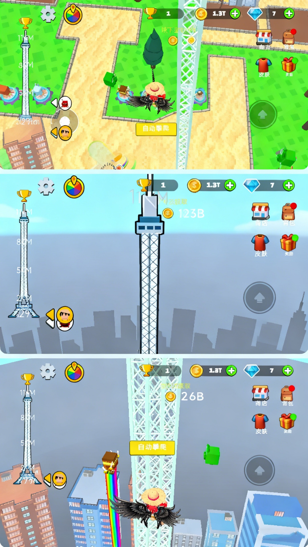 4、爬的越高获得的金币越多,利用金币可以购买翅膀,不同翅膀添加的属性不同。