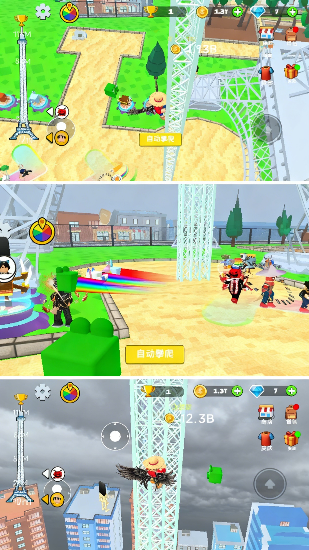 2、游戏专注于向上攀爬的体验,玩家可以体验在繁华都市的摩天大楼上不断攀升的独特视角和刺激感。