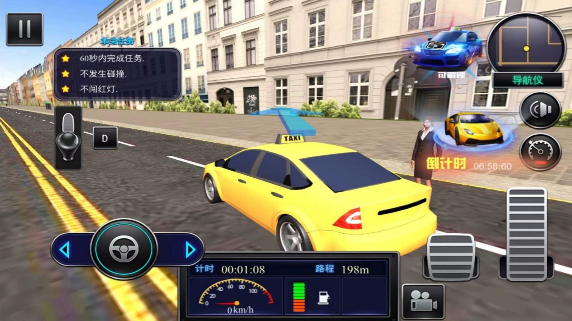2、玩家可从数款基础出租车开始,通过完成任务赚取收入,逐步解锁并升级性能更好、外观更炫的车辆。