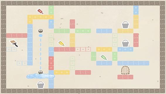 2、章鱼只能在与其身体颜色相同的区域内移动,玩家需要使用颜料工具改变章鱼颜色来通过障碍。