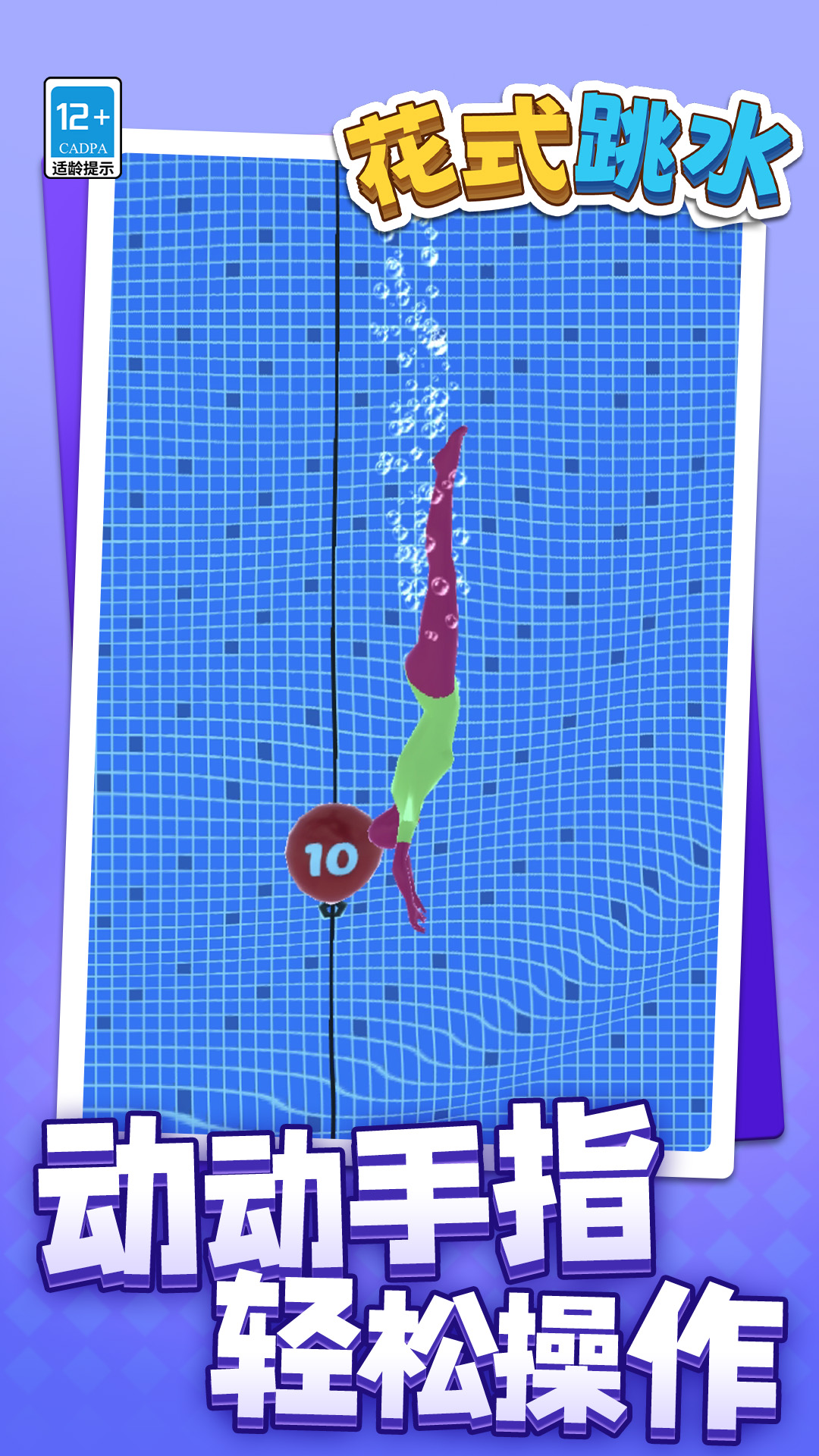花式跳水是一款让你体验空中艺术与精准入水的休闲模拟游戏。站在令人目眩的高台上,凝神静气然后一跃而下。在身体坠入碧池的短短数秒内,你需要完成一系列华丽的空中转体与翻滚,并最终以近乎完美的垂直姿态入水,将水花压到最小。游戏将模拟真实的物理,。挑战更高难度的动作组合,获取最高分数,朝着跳水传奇的目标前进吧!