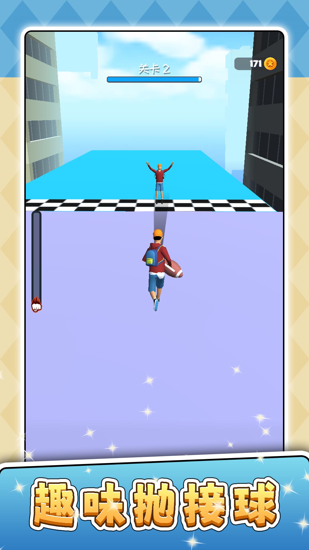 2、成功的跑酷获取球,开始移动跑酷继续扔球,成功的到达终点成功通关。
