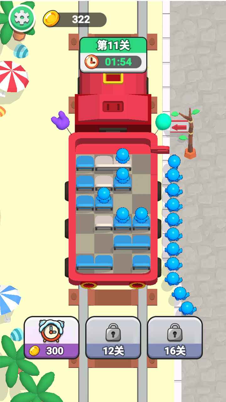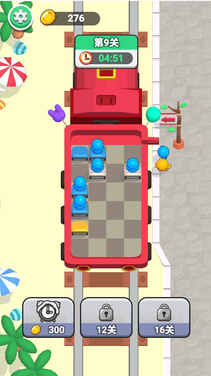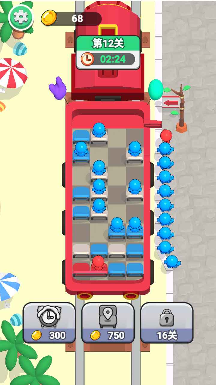 2、排队上车的人数越来越多,考验玩家的眼力,移动小人让后面的人陆续上车,不能挡到后面的人。