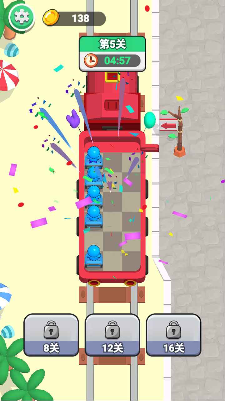1、每关开始,多种类型的乘客会从不同入口涌入月台,每列火车的车厢有不同目的地和座位类型;