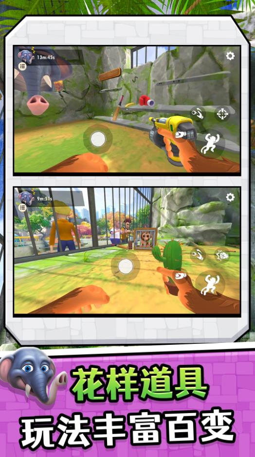 1、使用钥匙解锁新的动物笼舍,用电钻修复破损设施,用工具保持园区整洁,甚至用喇叭召集动物。