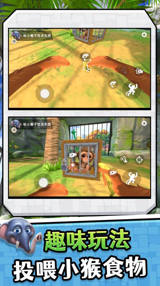 3、为大象切割水果,给猴子剥香蕉,替小熊猫搭配竹叶套餐,观察它们的喜好,建立亲密关系。