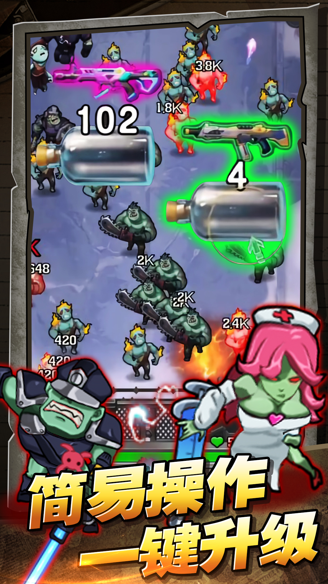 2、游戏提供无尽模式,随着时间推移,敌方将派出更多高血量、高防御的精英僵尸,需通过持续升级武器;