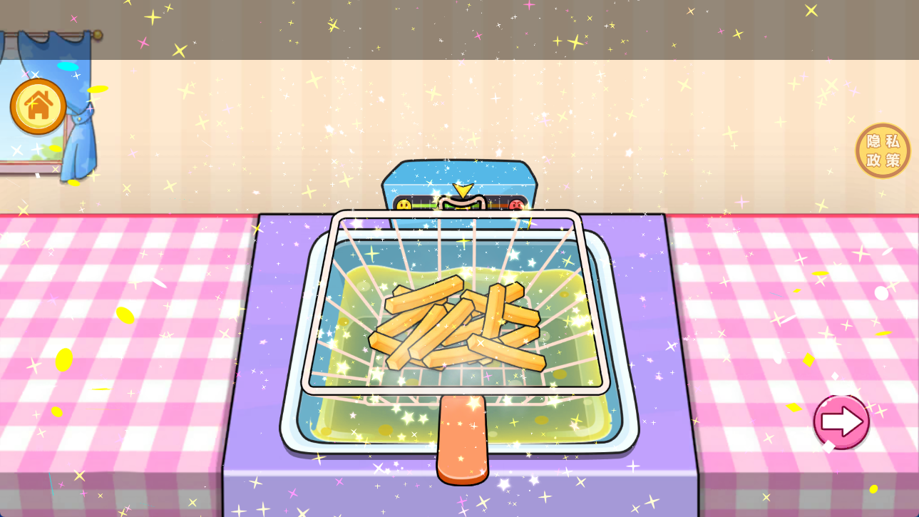 3、采用色彩鲜艳的卡通画风和直观的点击、拖拽、滑动等操作,还原真实烹饪手感的同时,操作简单易学。