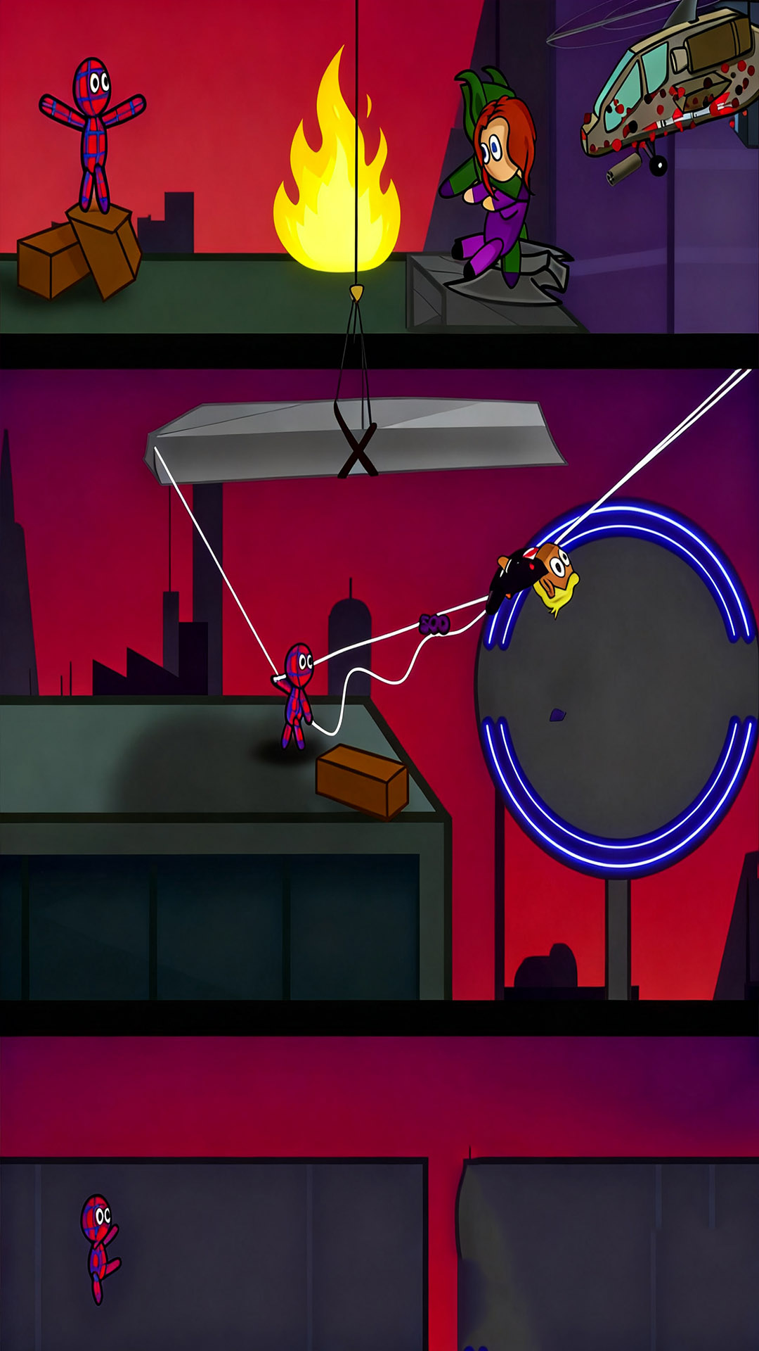 1、以蛛丝摆荡为核心,模拟在摩天大楼间高速飞荡、急转、弹射的流畅体验,操作手感爽快且富有技巧性。