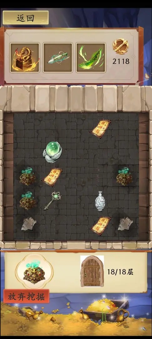 1、进入游戏,置身于新的世界,开始挖掘,点击不断的挖掘寻找隐藏的上古神器。