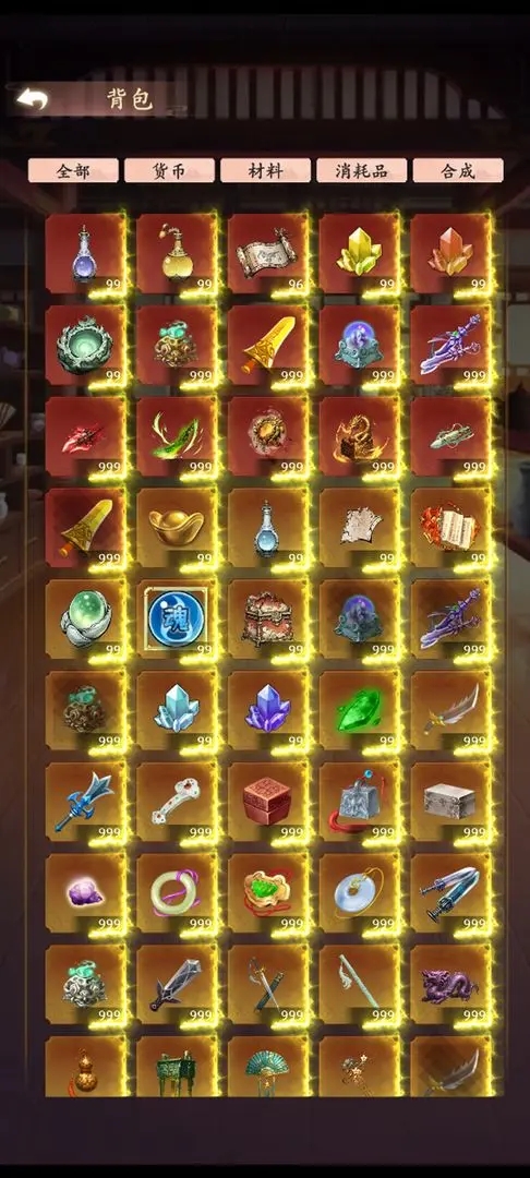 4、点击查看你的背包,各种类型的神器都可以查看,类型十分的丰富。