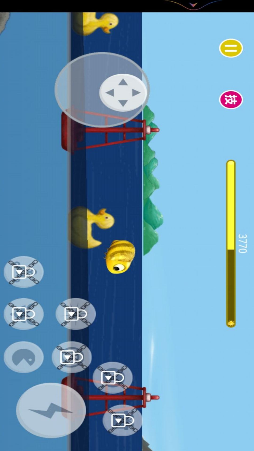 3、操控你的小蜜蜂,灵活穿梭于波光粼粼的水面上,精准锁定目标,一键吞噬,享受成长的快乐。