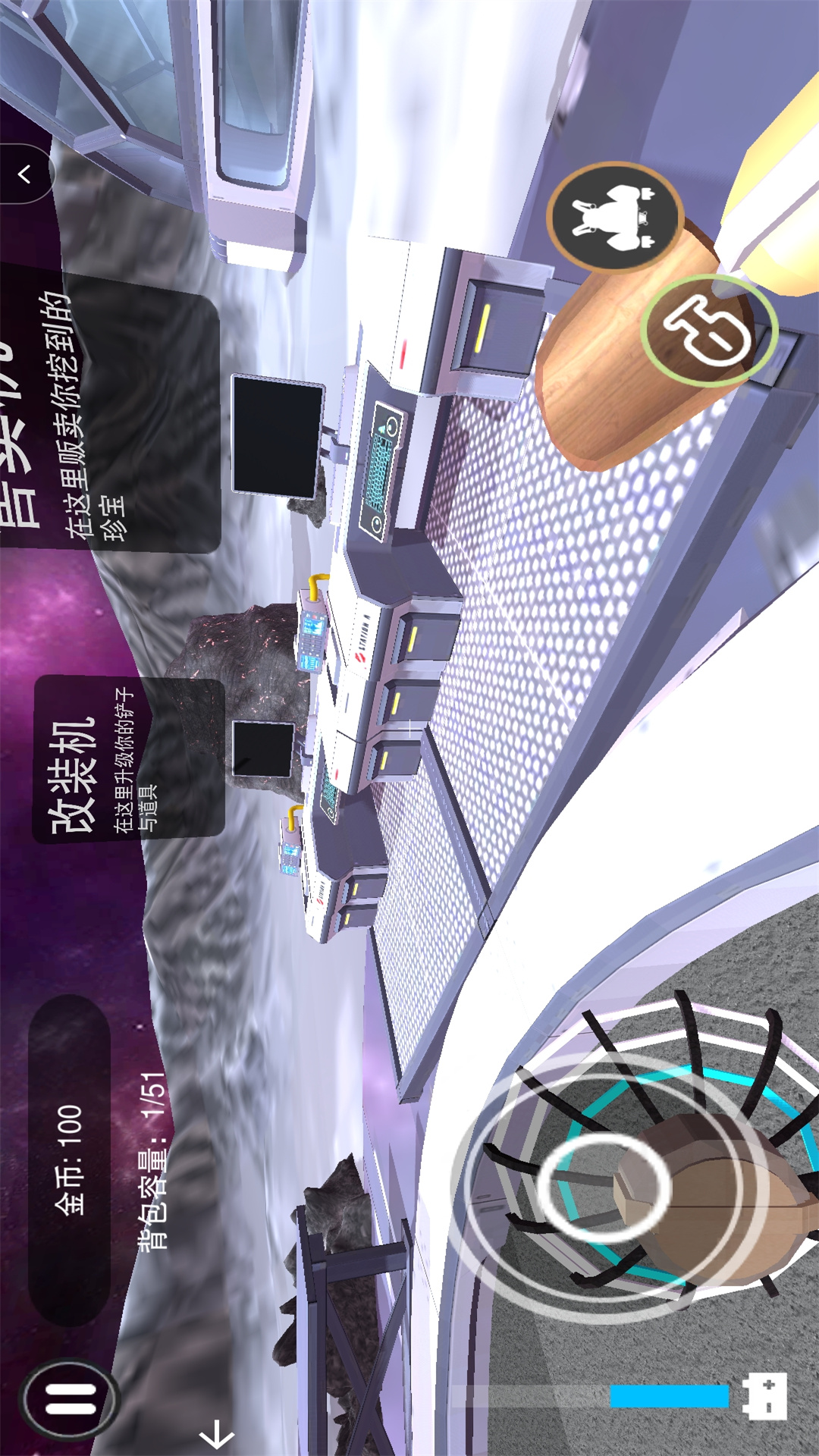 宝藏探索是一款以太空为背景的冒险探索的模拟游戏,玩家将扮演太空探险者,驾驶飞船穿梭于不同星球与天体之间,挖掘珍贵资源、发现隐藏宝藏,逐步揭开宇宙深处的秘密,不同星球地表环境差异显著,如岩石行星的坚硬地表、冰晶星球的滑溜冰层等,需针对性调整挖掘策略,选择合适的工具,积极的挖掘,收获神秘的宝藏。