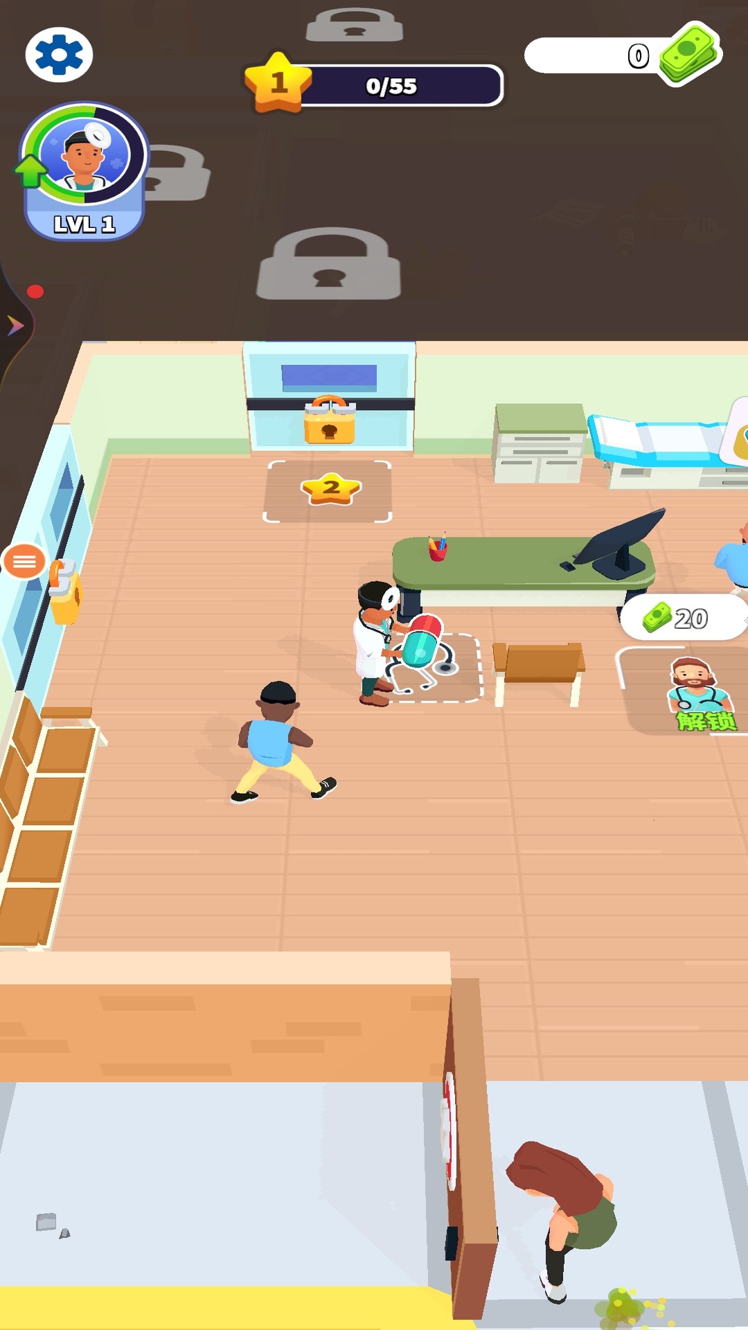 1、你的起点可能是一栋空荡荡的建筑,你需要亲自主持规划,建造并升级各类诊室;