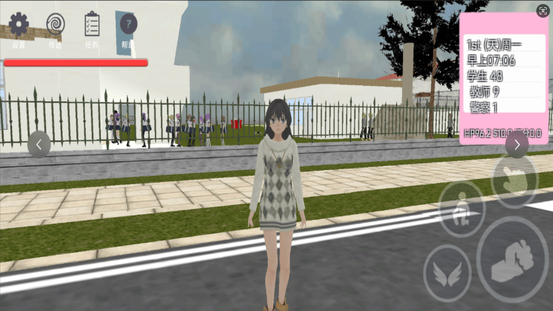 1、操控你心爱的美少女,在三维立体的校园场景中自由奔驰;
