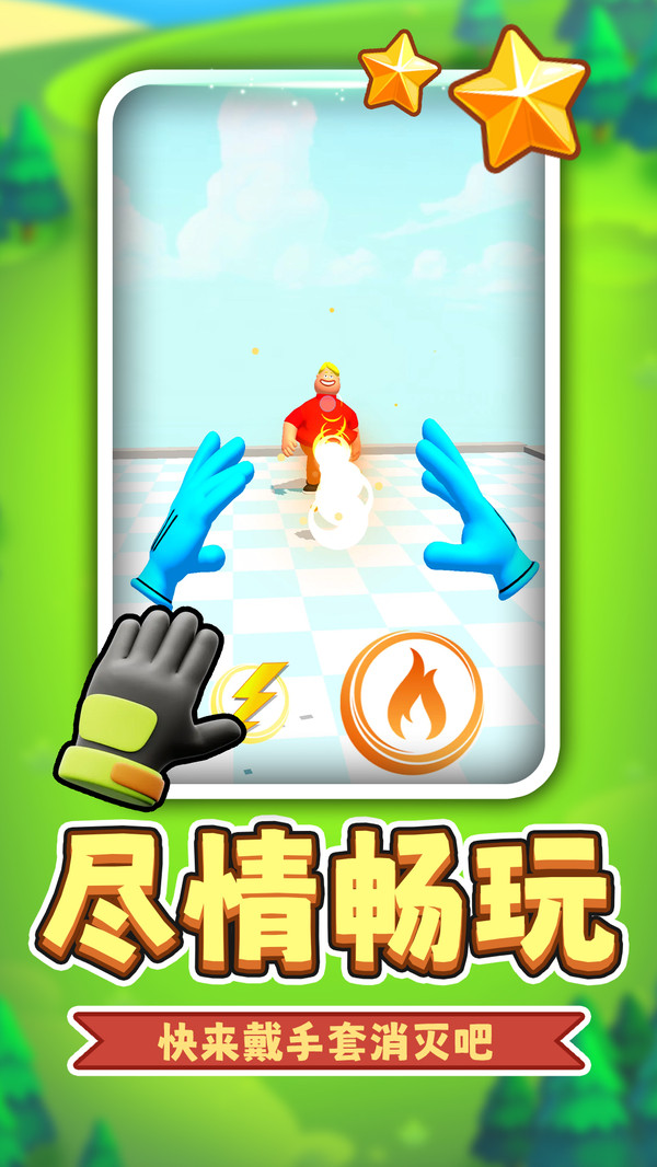 1、进入游戏,第一人称视角控制超能力手套,自由的移动开始闯关,精准的攻击沿路的敌人。