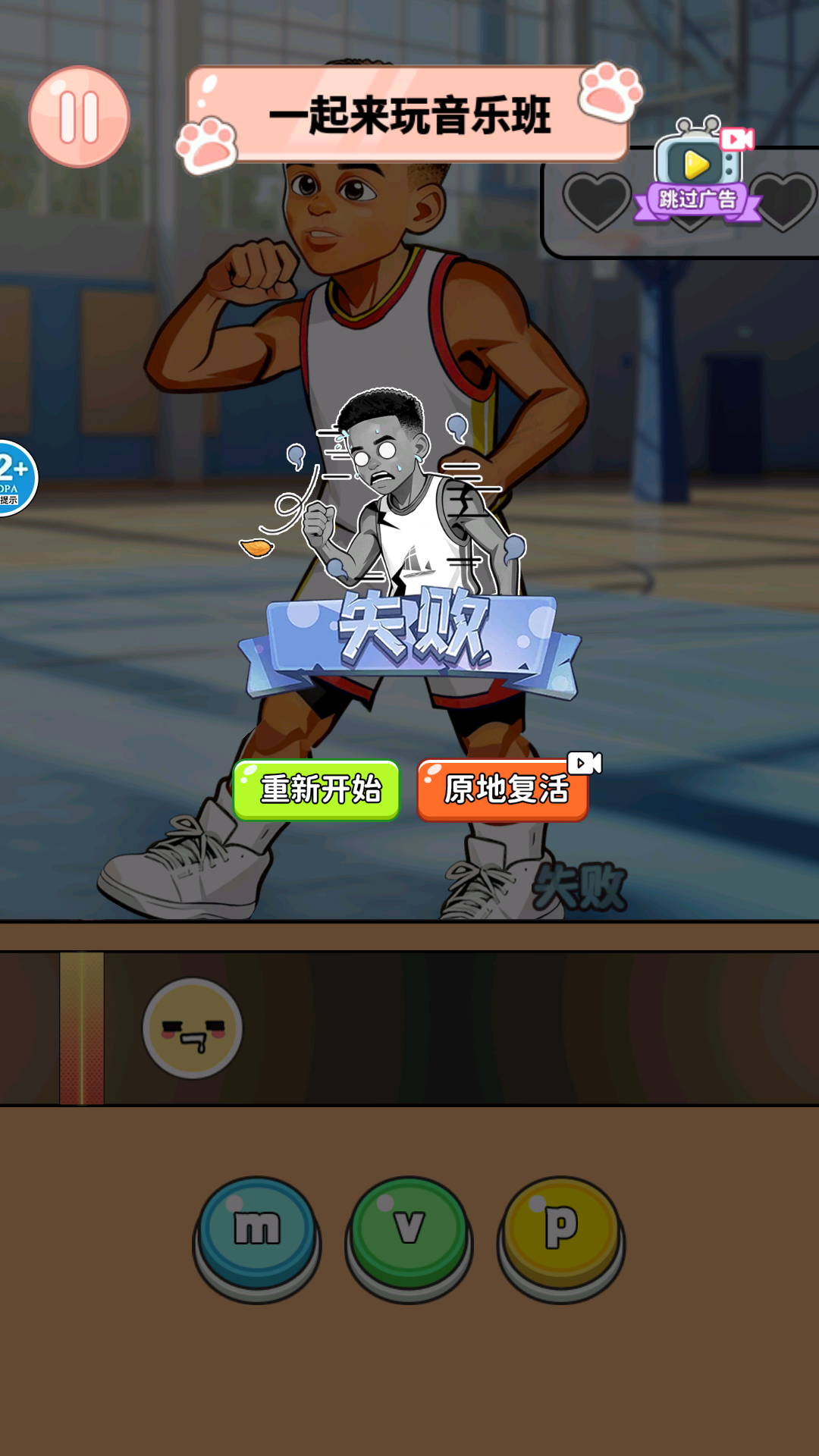 4、如果错过了节奏,就只能遗憾的结束游戏,不过看视频可以原地复活,继续挑战。