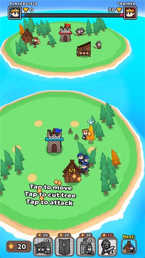 2、旁边有许多的树木,快点来砍伐它们获取资源吧。