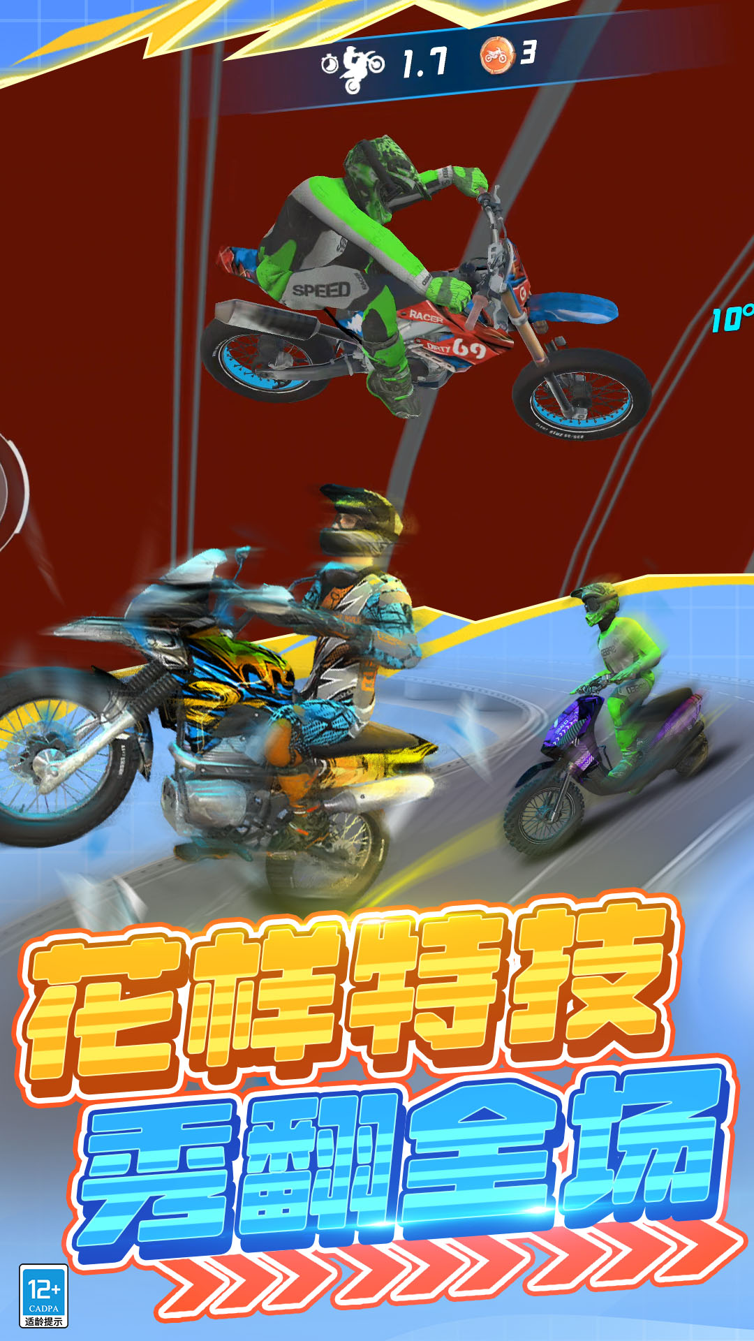 特技赛车手3D是一款摩托特技竞速游戏。你将驾驶性能强悍的越野摩托,在充满挑战的独特赛道上飞驰。赛道横跨沙漠峡谷等极端地形,不仅要与对手展开速度对决,更要在飞跃断桥、侧壁行驶时做出高难度特技动作。游戏完美结合了竞速的紧张刺激与特技表演的炫酷畅快,通过精准的操控,在颠簸与飞跃中保持平衡,超越所有对手,征服每一条狂野赛道。