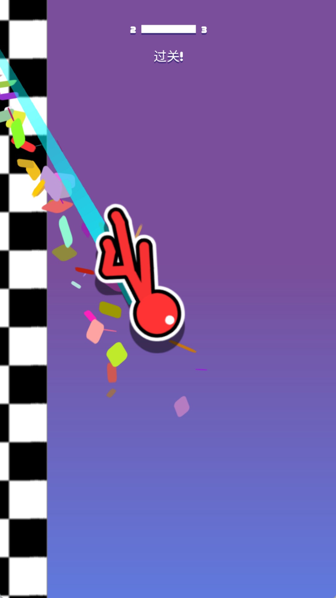 2、时机判断与松钩飞跃很重要,当火柴人摆动到理想的方向和速度时,再次点击屏幕松开抓钩,火柴人将沿切线方向飞出。