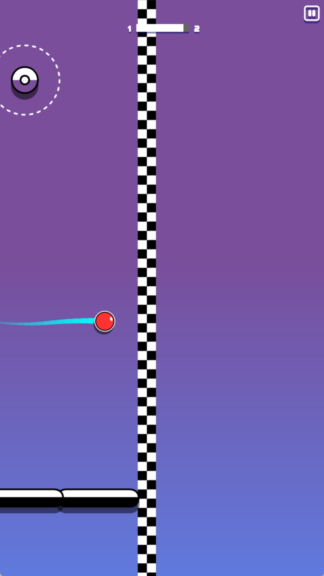 1、玩家点击屏幕任意位置,火柴人将向该方向射出抓钩,若命中可吸附点,则会开始以该点为圆心进行钟摆式摆动。