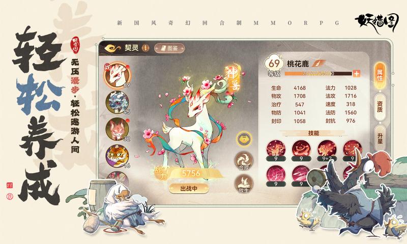 3、游戏以极具韵味的国风笔触,勾勒出每一个妖灵的独特形神,从衣袂飘飘的仙灵,到古拙威严的瑞兽,皆栩栩如生。