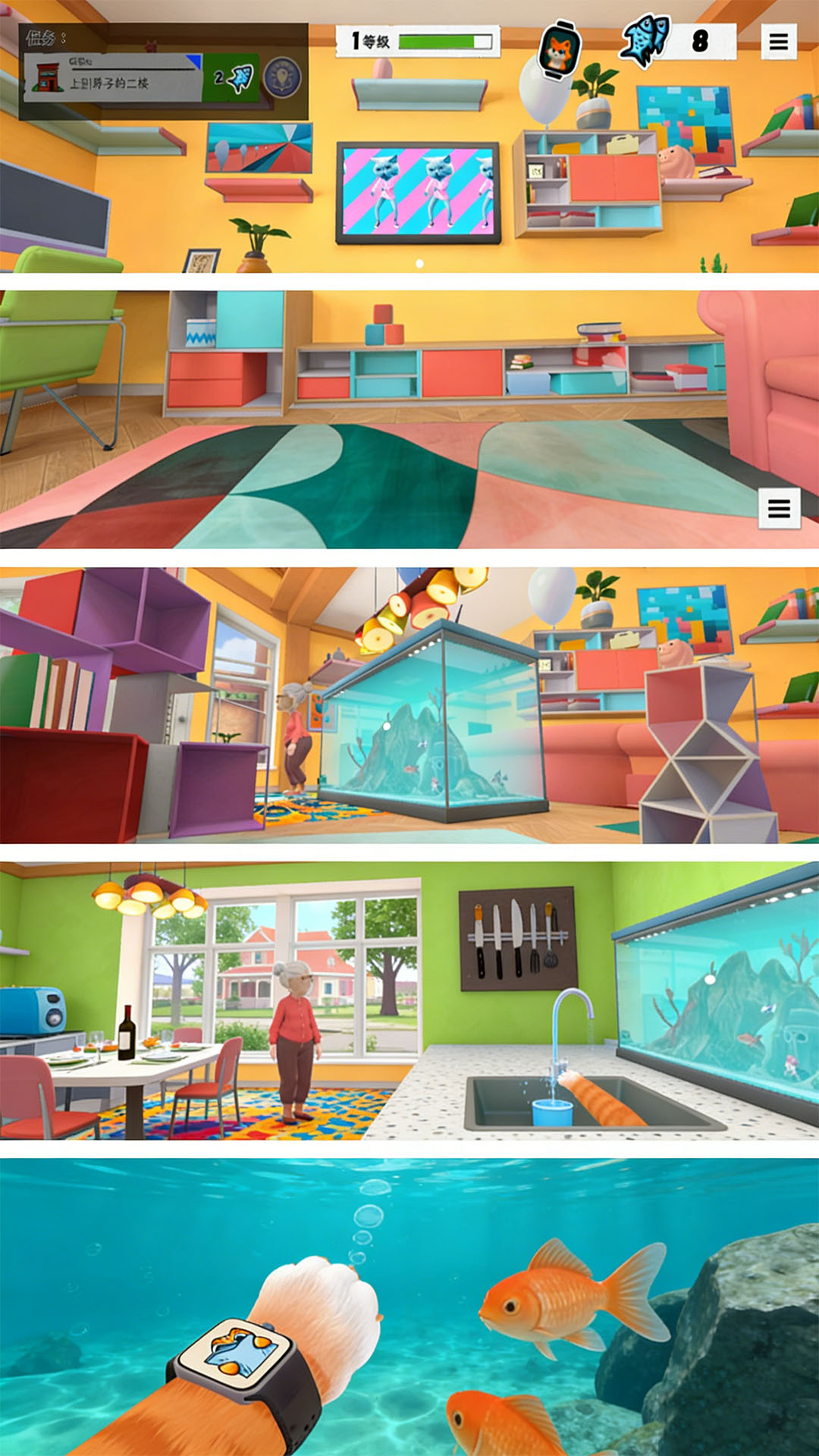 2、房间种类丰富,玩家可自由穿梭屋内各个角落,发现隐藏区域和更多道具,开始到处捣乱;