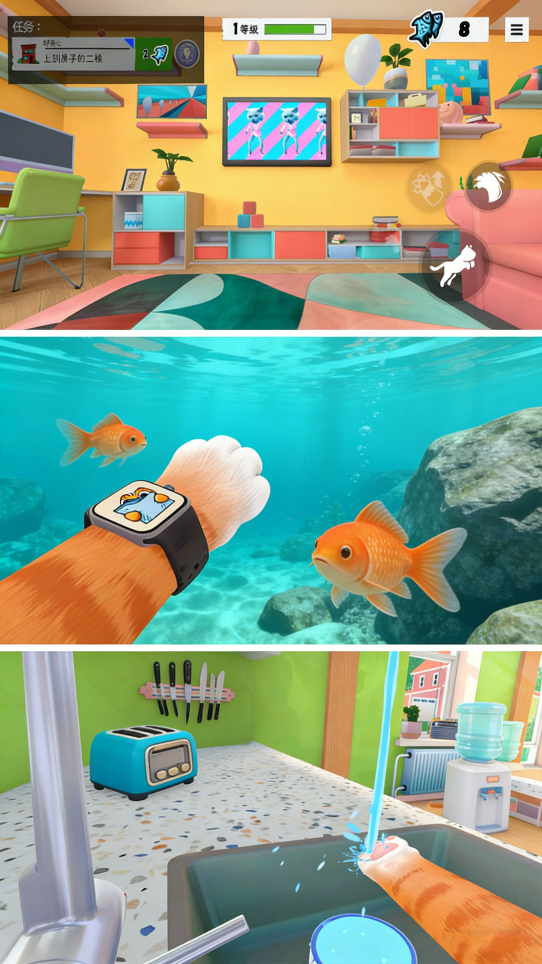3、靠近物品时会出现猫爪按钮,点击即可推动或打翻目标,创造无限可能的恶作剧方式。